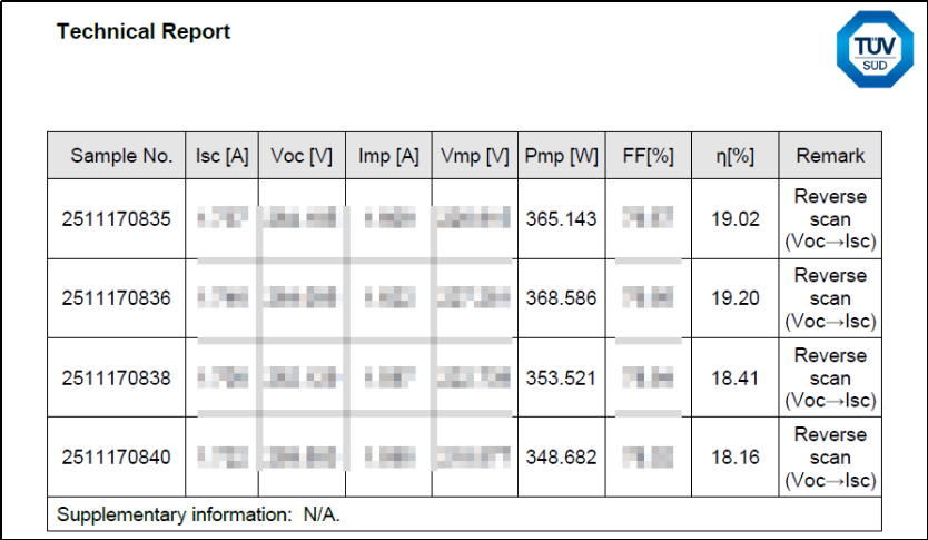 本批次2m 级组件认证结果,充分证明中核光电钙钛矿组件规模化生产工艺已趋于成熟,实现了高效率与量产稳定性的双重突破。